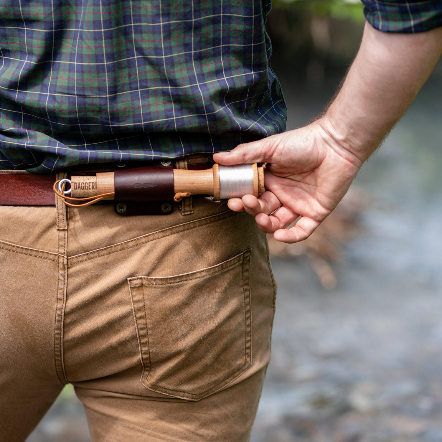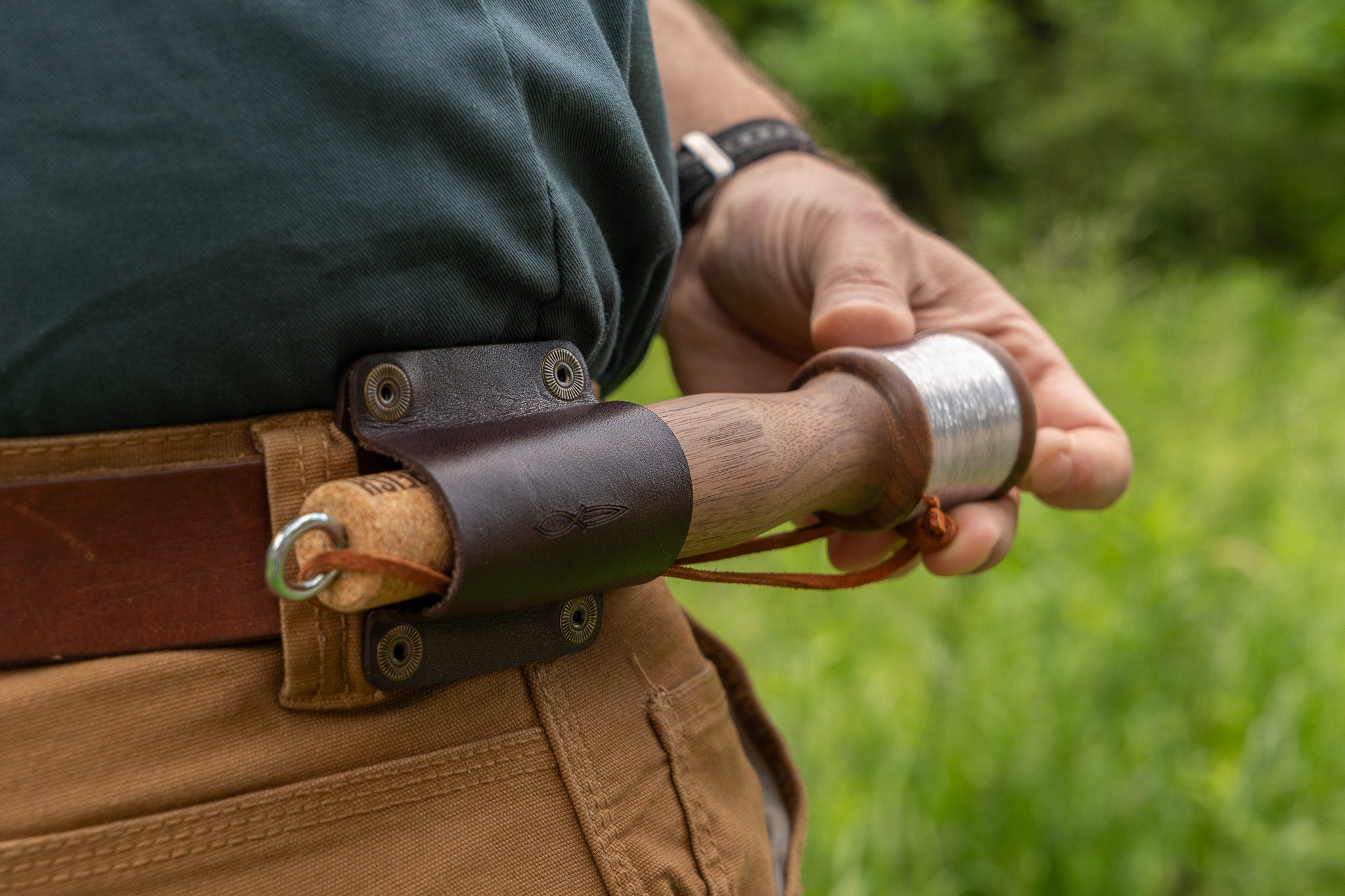 Easily carry your handline on your belt or backpack. This minimalist handline sheath uses our Strap Snap system, letting you snap it to your hip, wader, or pack strap while hiking between fishing spots.
