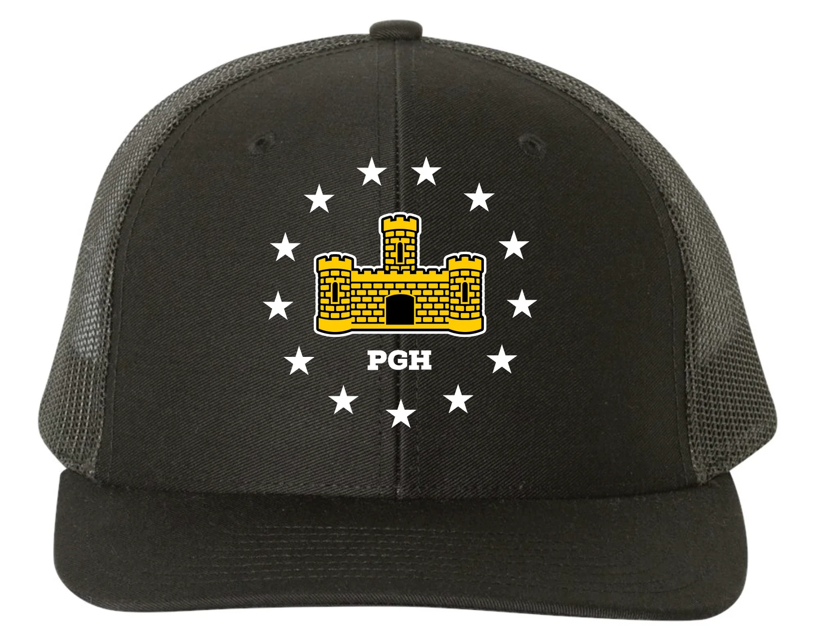 Top things off with the official Pittsburgh City Icon. Inspired by the city’s historic merchant flag, this emblem encapsulates the independent spirit of those who selflessly serve their community with distinction. Vented trucker-style adjustable cap.